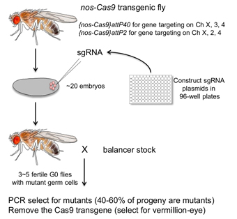 图为利用Cas9/sgRNA系统来快速高效的进行果蝇基因组编辑。