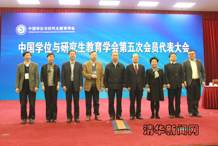 图为新当选的中国学位与研究生教育学会第五届理事会会长、副会长、秘书长,左三为姜胜耀、右一为杨斌。