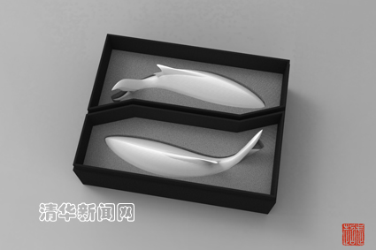 “当艺术设计作为产品销售时,就应考虑到设计的美观、可用以及实用性。”武超认为,在当今实用性产品设计时,必须拥有产品的整体概念,设计应涉及产品销售的可变更性,灵活、自由、满足顾客的不同需求。正如她的理解,在营销计划方面,武超作品的脱颖而出与其敏锐的市场嗅觉不无关系。鱼型陶瓷结合LED灯,跨越了陶瓷创作界线,注入科技元素,令人耳目一新。对于商家而言,销售时可灵活地根据空间大小和装饰需要来增减鱼的数量,既可成群也可单只,完全适应顾客的购买要求,而由光纤悬挂的鱼体内部使用LED等照明,节能高效,十分契合环保理念。鱼群的单体造型简单,可标准化量产,更可以做色彩、大小、形状等方面的二次设计,给予商家适应售卖主题的充分发挥。至于产品包装,武超将单只鱼儿置于典雅低调的黑色盒中,包装盒设计凹凸边缘,从而达到两两镶嵌的组合效果,成为一个整体。至于为何如此设计,武超认为“两两镶嵌,成为整体,一来成双成对,美观吉祥,二来方便产品运输和摆放,减少损伤”。如此细致周到的考虑自然占得了商业的先机,也使设计最终得以完整呈现。