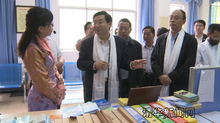 图为西藏基层工作毕业生李青向胡和平汇报当地社区管理情况。