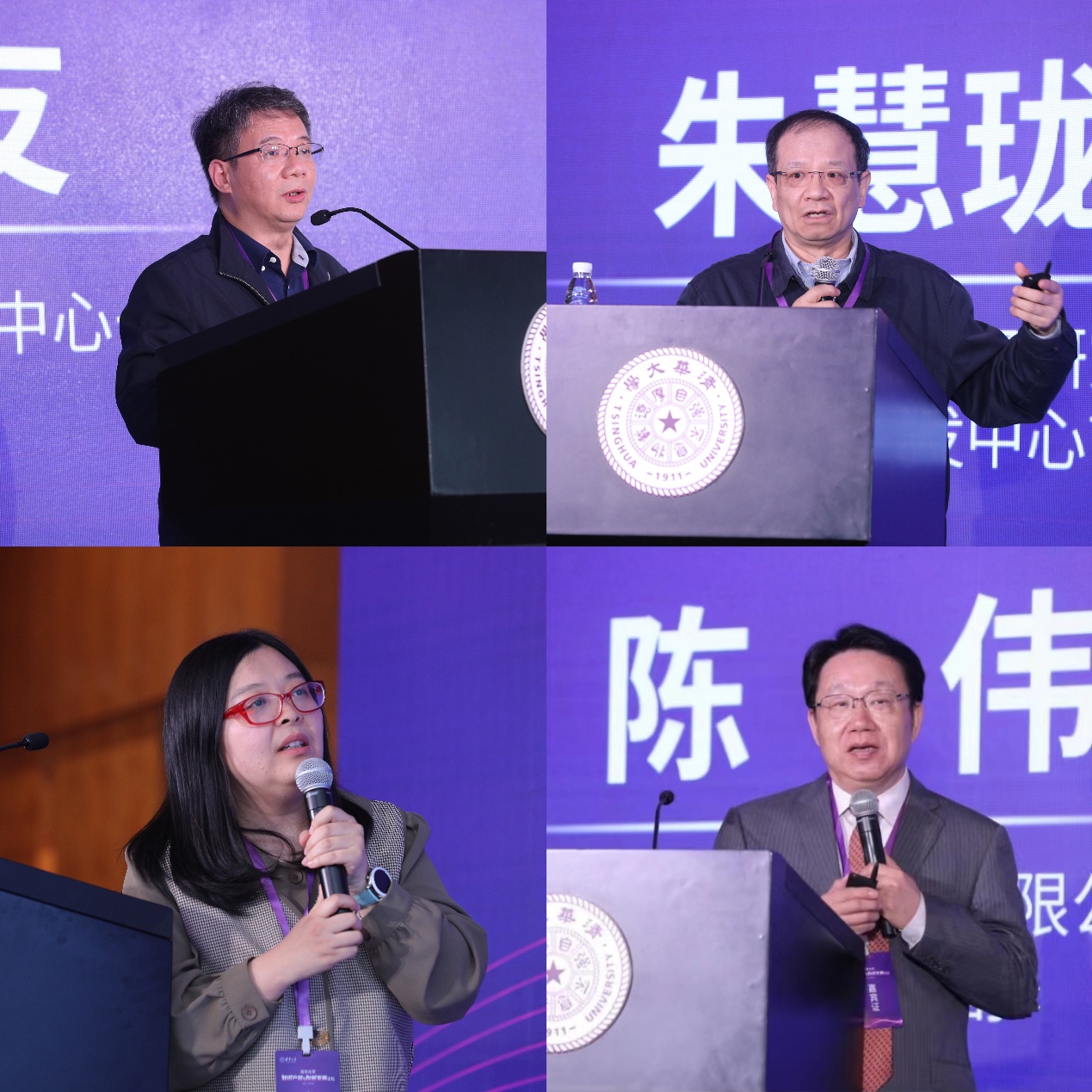 邓仪友、朱慧珑、王菲、陈伟(从左至右,从上至下)分别发表主题演讲