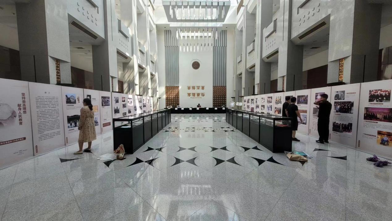 近日,何东昌的子女们整理了何东昌和他的夫人李卓宝留下的手稿、文章、照片、实物等大量史料,全部捐赠给学校,由档案馆收藏。校党委原书记、校史编委会副主任方惠坚、贺美英代表学校向何东昌子女代表颁发捐赠证书并赠送纪念品。档案馆、校史馆在主楼大厅联合举办的“坚持崇高理想 献身人民教育——纪念何东昌诞辰100周年展览”,展出了部分捐赠物品。