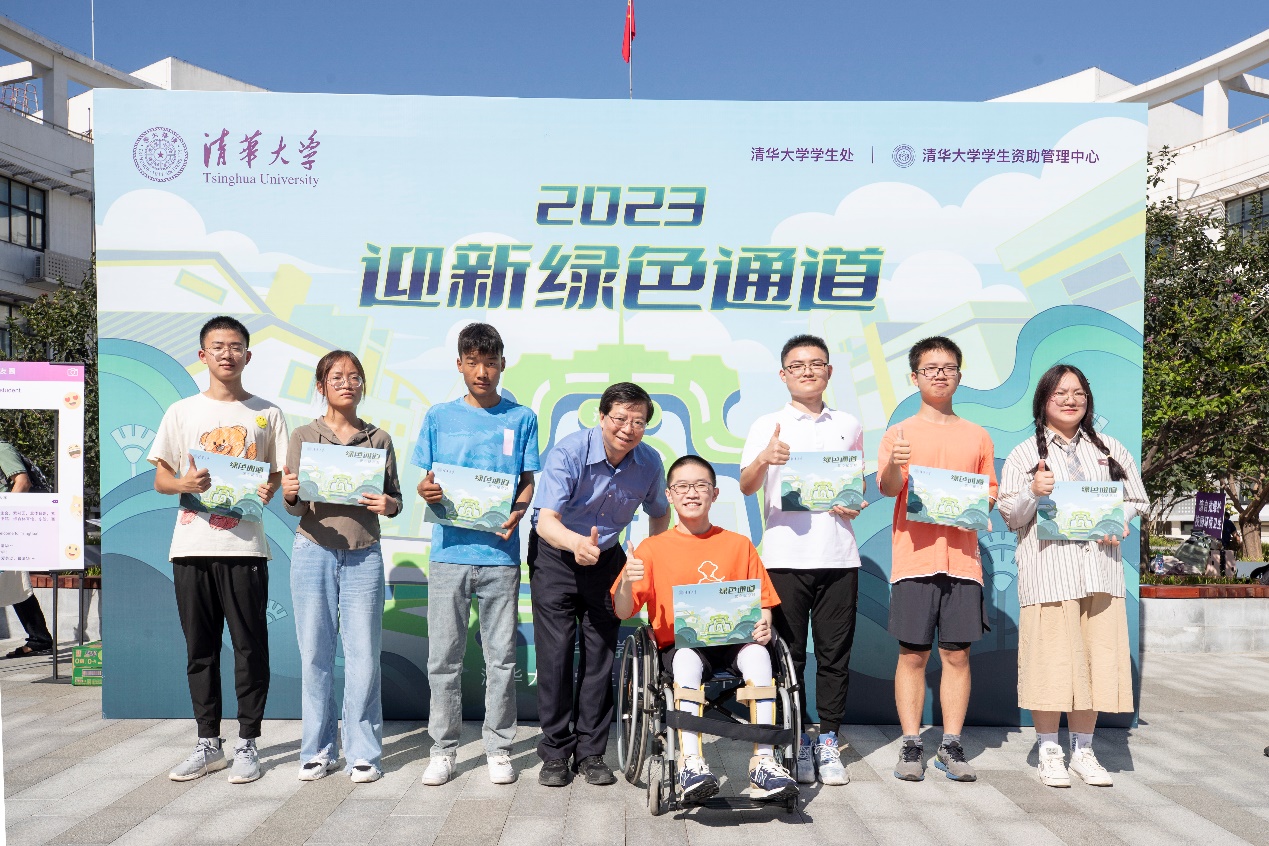 邱勇与同学们在“迎新绿色通道”上合影