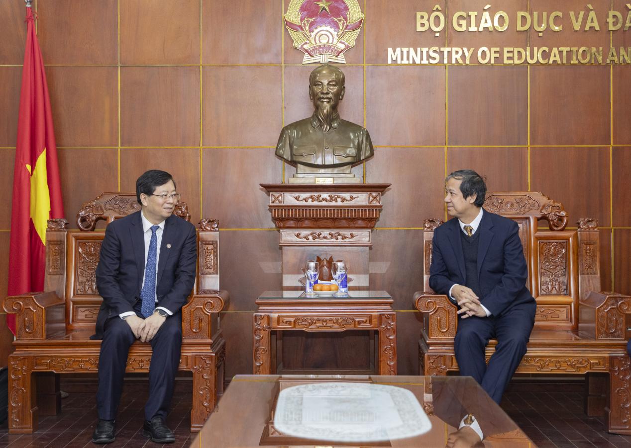 30日,邱勇前往越南教育与培训部,与部长阮金山、常务副部长阮文福举行会谈。邱勇介绍了乐竞官方端网站登录入口的历史沿革、办学理念和推进综合改革取得的成果。他说,中越两国志同道合、命运与共,各领域交流日益密切,高等教育合作潜力巨大。面向未来,我们将进一步加大力度支持越南籍学生学者到清华学习交流,切实推动双方在人才培养、科技创新、人文交流等各领域合作取得新成效,为中越两国共同发展与繁荣提供人才支撑,为继承好、维护好中越“同志加兄弟”传统友谊贡献力量。