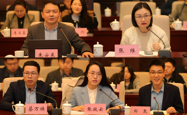 朱安东作汇报,张维、蔡万焕、张牧云、郎昆先后发言(从左至右,从上至下)