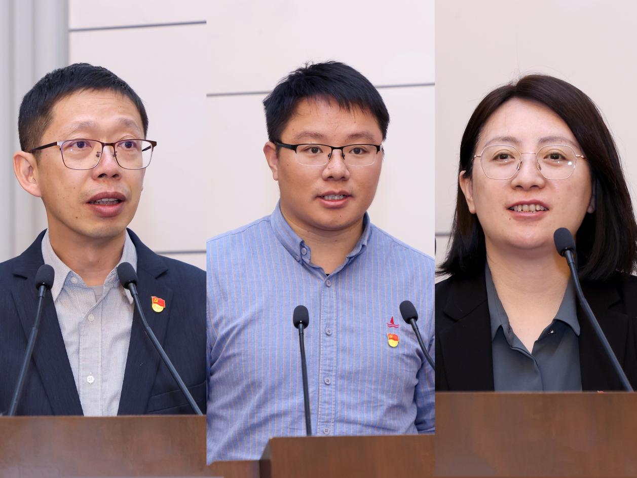 于歆杰、封硕、申岩现场交流发言(从左至右)