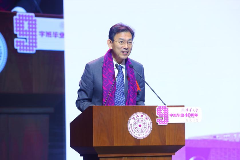 热能系校友张作义毕业后留在清华核研院工作,他讲述了自己从前辈手中接过接力棒,带领团队让中国高温气冷堆技术实现从跟跑、并跑,再到领跑世界的发展历程。他说,“我们都很荣幸成为清华学子,我们也用一生的职业生涯证明,我们是服务国家、服务人民、有实践能力的理想主义者!”