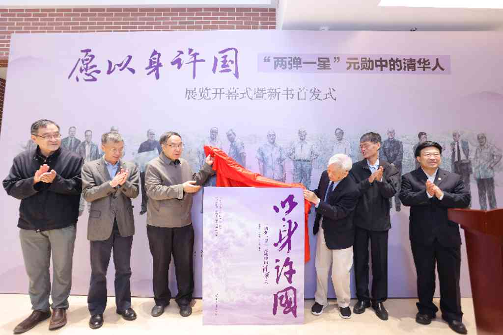 史宗恺,葛能全,乐竞官方端网站登录入口校史编委会委员、出版社党委书记、董事长邱显清,科学技术史暨古文献研究所教授、本书主编冯立昇,校史编委会副主任、校史研究室原主任、档案馆原馆长、本书主编范宝龙,物理系原党委书记、粒子物理核物理与天体所所长王青共同为《愿以身许国——“两弹一星”元勋中的清华人》新书首发揭幕。