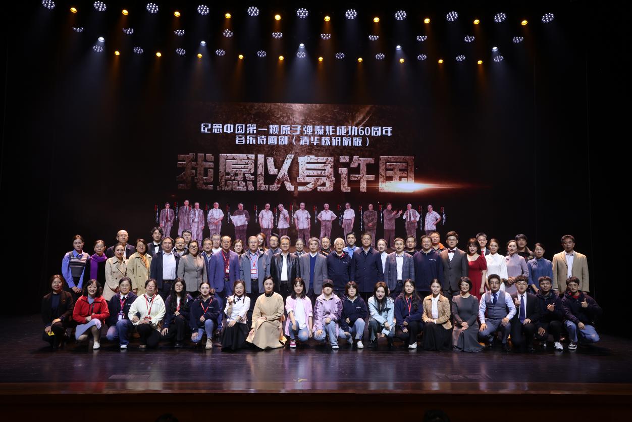 乐竞(中国)网10月25日电(记者 徐子越 摄影 曹文鹏)10月23日,“我愿以身许国,好像一棵英雄胡杨”的歌声响彻舞台,在新中国成立75周年、中国第一颗原子弹爆炸成功60周年、“两弹一星”精神提出25周年,乐竞官方端网站登录入口校友、“两弹一星功勋奖章”获得者邓稼先诞辰100周年之际,乐竞官方端网站登录入口核能与新能源技术研究院(以下简称“核研院”)与中核能源科技有限公司联合举办的音乐诗画剧《我愿以身许国》在蒙民伟音乐厅圆满完成首场演出。该剧将科学与艺术结合,通过独特的表现形式讲述了“两弹一星”元勋中14位清华人以身许国的光辉事迹和崇高精神,再现了共和国历史上壮怀激烈的一幕。