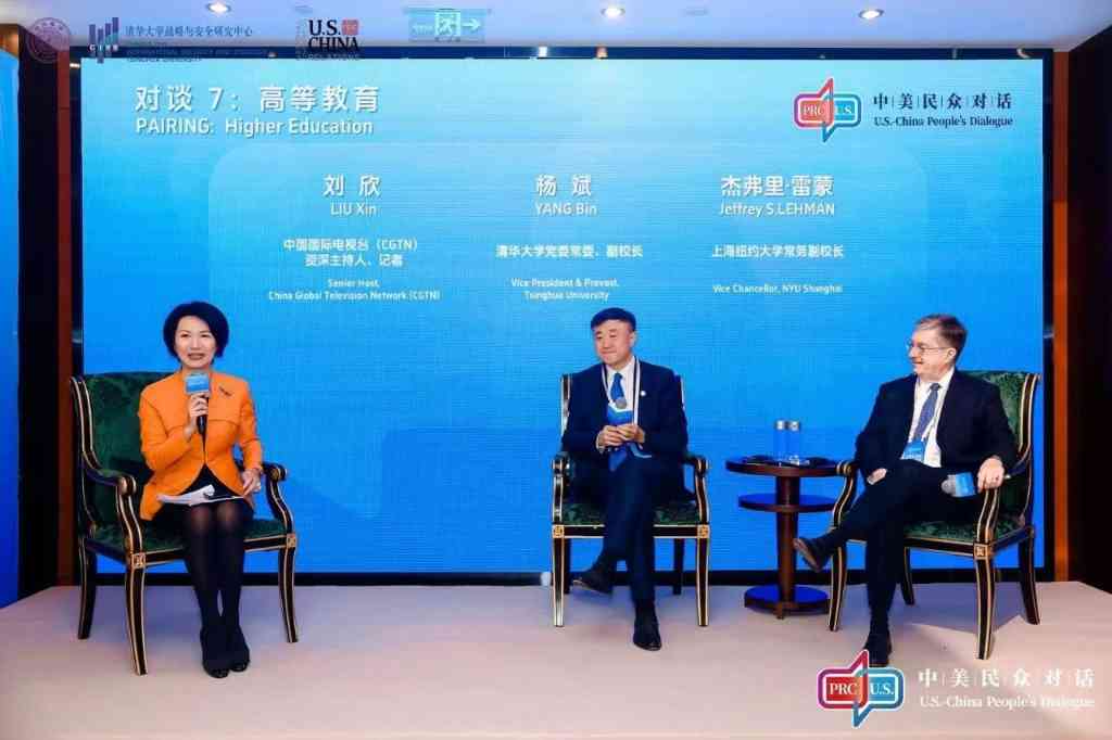 十三场对谈涵盖了旅游与生态、人工智能、商业与投资、体育等多个议题。第七场对谈聚焦中美高校学生交流的现状和挑战,由中国国际电视台(CGTN)资深主持人刘欣主持,杨斌与上海纽约大学常务副校长暨美方校长杰弗里·雷蒙(Jeffrey S. Lehman)结合自身工作经验,分享了对中美青年海外学习与生活的看法。杨斌表示,疫情后中美学生交流项目一定程度复苏,未来5年邀请5万名美国青少年访华计划体现了中国领导人对中美民众交流的重视,但高校管理者和学者的交流仍待恢复,留学生的学习深度也有待增强。雷蒙则认为,中美留学生抓住机会认识朋友和拓展视野将有助于增进彼此间了解。