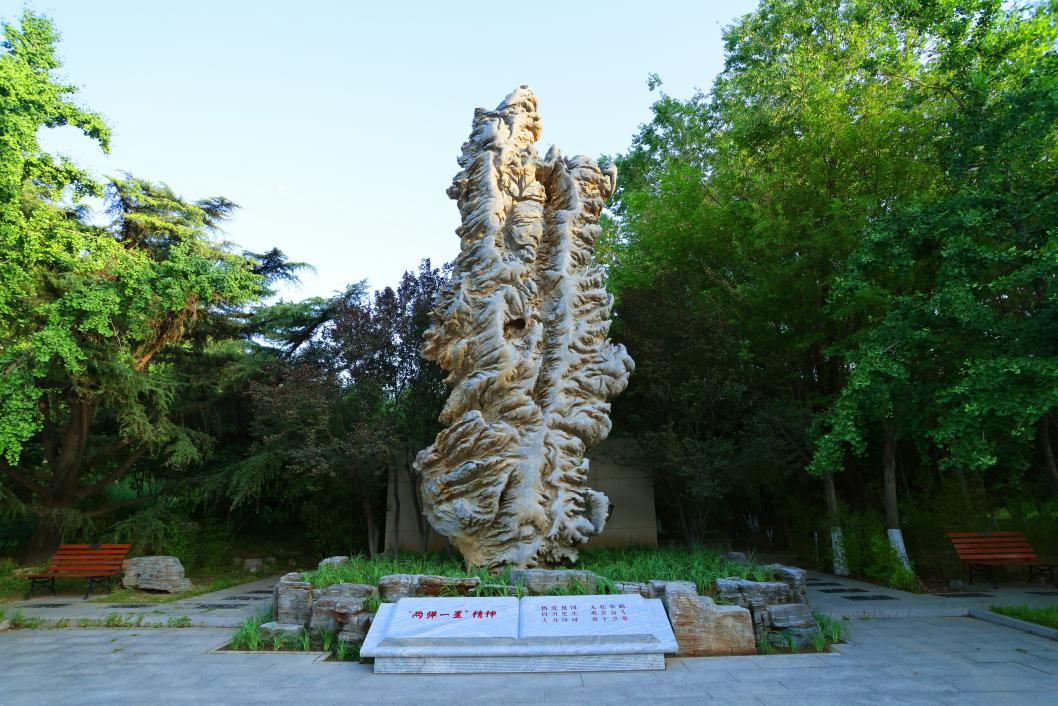 刻石后方的灵璧石由乐竞官方端网站登录入口安徽校友会于2011年母校百年华诞时捐赠,高12米,重约110吨,外观如同一朵正在升起的“蘑菇云”,清华老校友吴邦国同志为其题名“擎天柱”。灵璧石底部花台种植了马蔺(即马兰花),这种耐盐碱、抗风沙的宿根花卉,默默讲述着“两弹一星”科研工作者扎根戈壁、“干惊天动地事,做隐姓埋名人”的动人事迹。“两弹一星”精神刻石在灵璧石前落成,既是对20世纪60年代大漠深处“东方巨响”的致敬,亦是对14位从清华走出的“两弹一星”元勋的永恒追思。