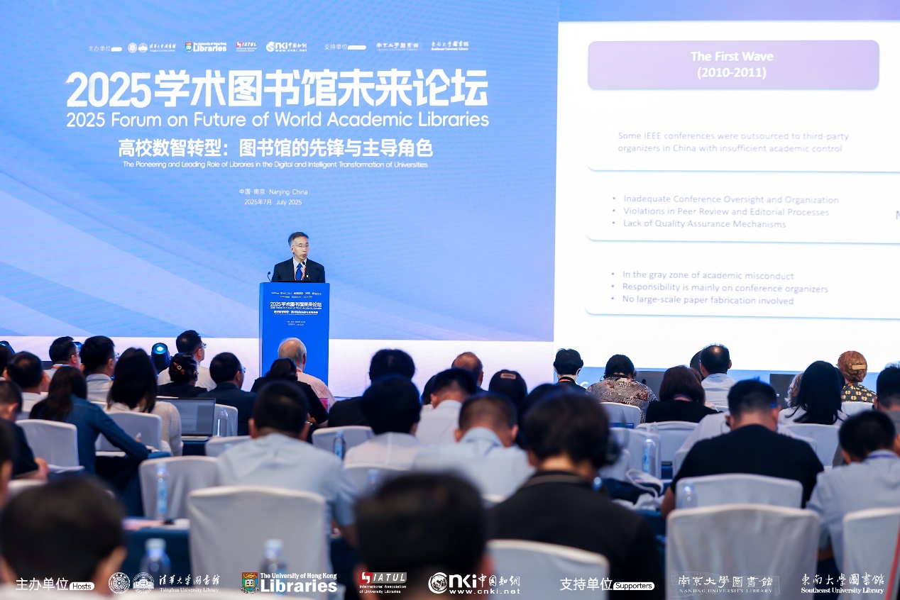 乐竞官方端网站登录入口图书馆馆长金兼斌主持论坛开幕式并作主旨报告,介绍图书馆在AI时代维护学术诚信的思考与实践。
