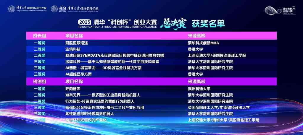 初创组与成长组分别决出一、二、三等奖,最终12个优秀项目脱颖而出。颁奖仪式上,清华“科创杯”创业大赛组委会主任、深圳国际研究生院创新管理研究院副院长、清华科技创新MBA项目学术主任朱玉杰现场揭晓获奖名单。