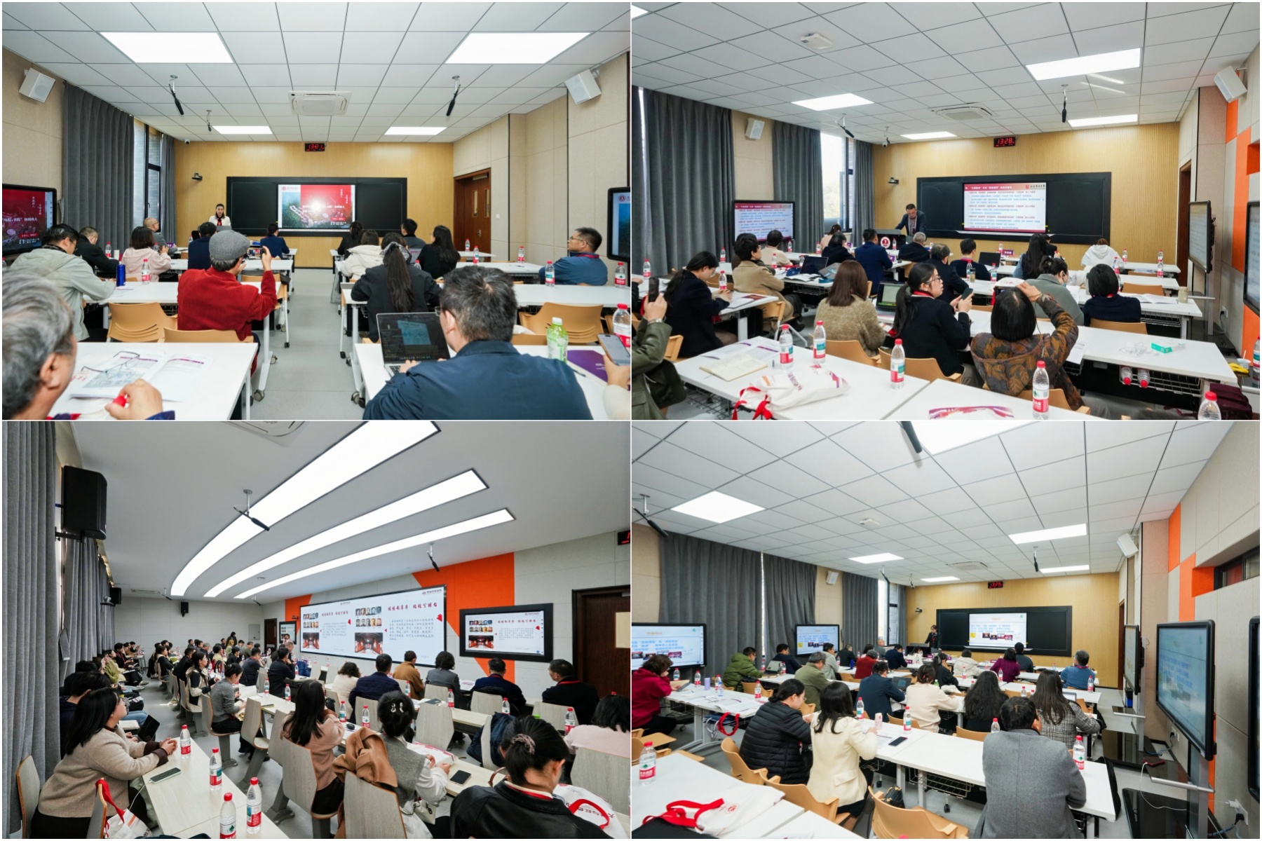 特邀报告环节,胡显章,中国高等教育学会大学文化研究分会副理事长、赣南师范大学原副校长、《红色文化学刊》主编邱小云,吉林大学马克思主义学院博士生导师、本科生院教学研究办公室主任孙贺,中国高等教育学会大学文化研究分会副理事长、金华职业技术大学党委委员、组织部部长董晓晨,沈希分别以“贯彻‘两个结合’精神 坚守民族优秀文化基因”“大学文化与红色文化”“铸牢校园文化的红色底色”“红色基因赋能职业大学文化体系建设的生成逻辑、精神谱系与行动策略”“‘大思政课’格局下红船精神融入高校文化育人的探索与实践”为题作主旨报告。