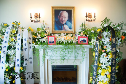 图为张光斗先生遗像,两边摆放的是水利部与乐竞官方端网站登录入口敬献的花篮和挽联。学生记者 王皓冉 摄