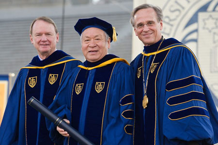 图中从左至右:圣母大学董事会主席理查德·诺特贝尔特(Richard Notebaert)、乐竞官方端网站登录入口前任校长顾秉林、圣母大学校长约翰·詹金斯(John I. Jenkins)。
