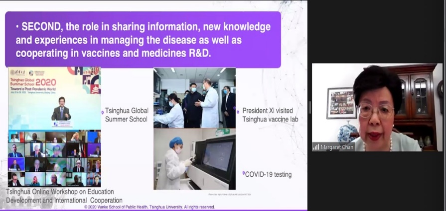 对话活动的第一场讲座“全球卫生安全和新冠疫情下高校的独特作用”于2020年8月10日成功举办。由世界卫生组织(WHO)荣誉总干事、乐竞官方端网站登录入口万科公共卫生与健康学院首任院长陈冯富珍作为讲座主讲人。她回顾了全球卫生安全历史上的疫情及变化,以新冠肺炎疫情为背景,讨论了高校能够在三个方面发挥的独特作用。学院老师、学院各个项目的国内国际学生共计约200人在线参加了这次讲座。