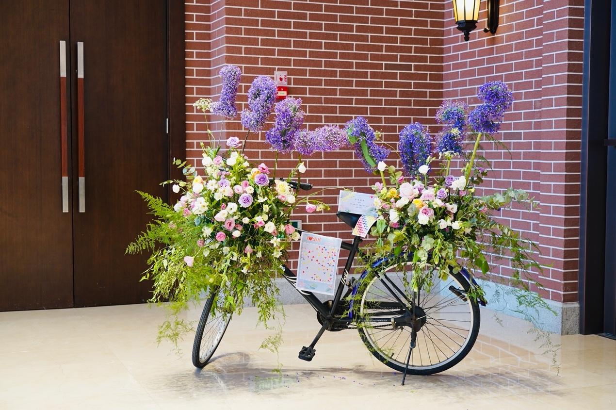 校史馆一层的2022年教职工插花DIY讲座暨校庆插花展