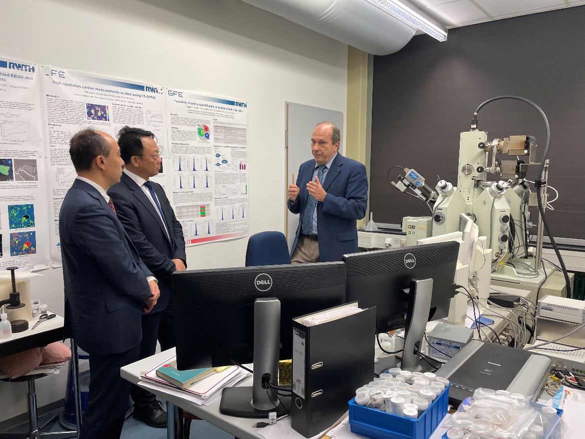 会谈结束后,王希勤一行参观了亚琛工业大学电子显微镜中央设施中心等实验室及研究所,深入了解亚琛工业大学当前所聚焦的尖端科研领域以及取得的进展。在参访中,王希勤一行还与相关专家深入交流,聚焦科研前沿领域,探讨两校未来能够开展创新合作的具体方向。