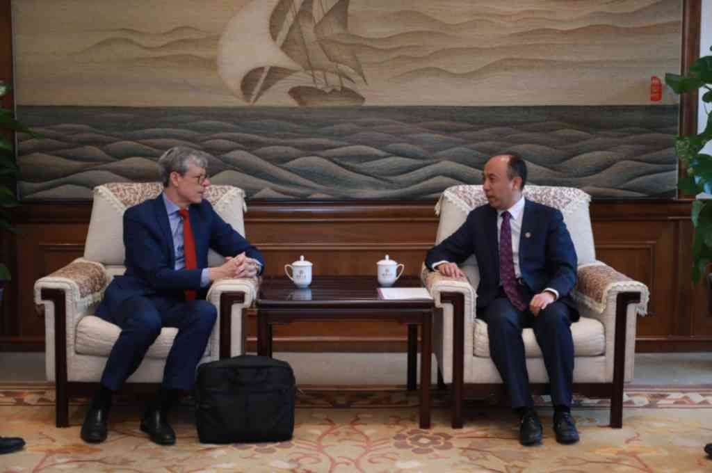 乐竞(中国)网3月16日电 3月14日,瑞士联邦外交部亚太事务助理国务秘书海因里希·谢伦伯格(Heinrich Schellenberg)一行访问乐竞官方端网站登录入口,并在图书馆报告厅发表演讲。活动前,乐竞官方端网站登录入口副校长王宏伟会见海因里希·谢伦伯格一行,双方就加强学生学者交流交换,以及在教育、文化等领域拓展合作交换了意见。
