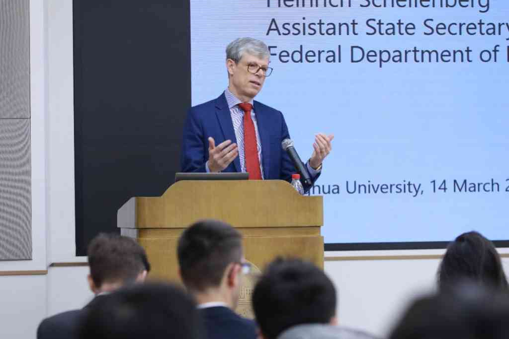 会见后,海因里希·谢伦伯格发表了题为“瑞士对亚洲外交政策:聚焦中国”的演讲。来自全校各院系近百名师生现场聆听。