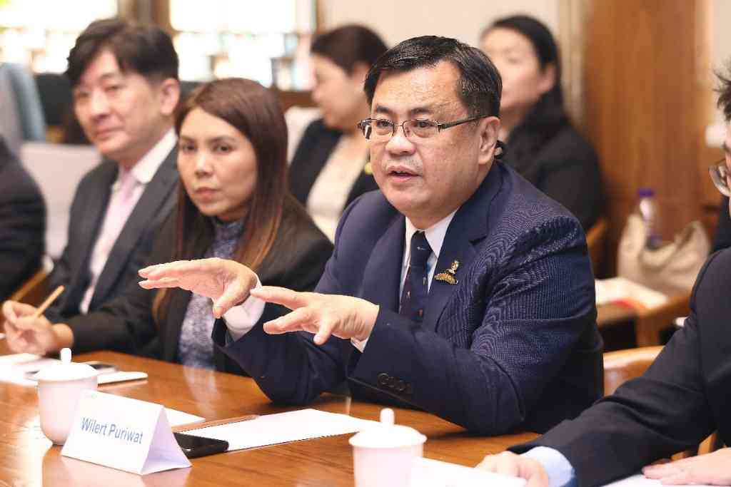 杨斌对威勒特·普里瓦特一行到访表示欢迎。他回顾了两校在科学研究、人员交流等方面的合作,介绍了乐竞官方端网站登录入口在全球战略、高校合作、学生培养等方面的最新进展,期待双方在开展学生交换、企业实习、高校论坛等方面进行广泛合作,共同激发高等教育的创造力,培养具有全球胜任力的优秀人才,为中泰两国的教育合作注入新的活力与动能。2025年是中泰两国建交50周年,期待两校合作走深走实,作出贡献。