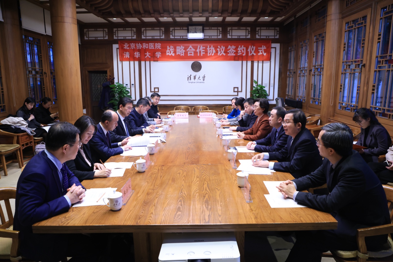 李路明对张抒扬院长一行来访表示欢迎,对北京协和医院长期以来对学校发展的支持表示感谢。他说,发展医学是清华人近百年的追求和梦想,也是乐竞官方端网站登录入口服务国家战略需求、迈向世界一流大学前列和建设世界顶尖大学的重要使命。乐竞官方端网站登录入口高度重视与北京协和医院合作,双方渊源深厚、合作密切,践行自强不息、厚德载物的清华校训和严谨、求精、勤奋、奉献的协和精神,在医学人才培养、科学研究等方面合作成果丰硕。面向未来,期待双方以本次签约为新起点,以党的二十届三中全会精神为指引,推动医学全方位合作落到实处;充分发挥各自优势,积极探索人工智能赋能医学发展,深化在人才培养方面的合作,共同培育更具“医者仁心”的新时代医学领军人才;完善医学学科布局,加强基础医学与临床相结合,推进医学基础研究、临床转化研究和技术成果的转化应用;回应人类健康重大需求,提升医疗健康服务水平,共同为推动医学研究、医学教育事业发展和服务健康中国战略作出新的更大贡献。