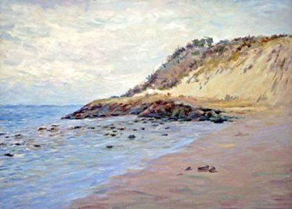 “印象派!”看到刘忆梦作品的人一定会大声说出她作品的样貌。她的可贵之处也正是坚守着这一份对绘画的原始冲动,以印象派的笔法描绘出她心中的美。刘忆梦的绘画技法取自印象派,又与其截然不同。印象派绘画反对教条的沙龙模式而强调艺术作品描述直观的视觉效果,身出名门的印象派先驱们总是注视着资产阶级的小情怀,草地、午餐、周末的种种场景向观众炫耀着一种优雅闲适的生活。而从刘忆梦的绘画中读出的,是她对大自然的热爱,是一种寄情于自然的宽广胸怀。我们从她的作品中看到了蓝天、白云、大海,还有云朵挡不住的强烈阳光。很少在女性艺术家的作品中描绘这些元素,更多女性艺术家的视角是向下的,阳光总是透过窗户投射在窗台上的小植物上,留下淡淡的影子。这不是刘忆梦关注的,她是要站到高处眺望的:看海的辽阔,田野的广袤和山林的幽深。