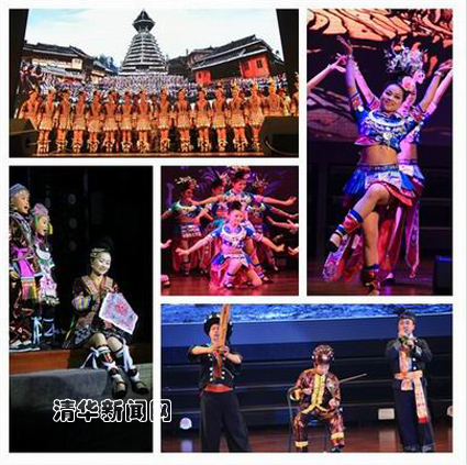 晚上,清华法学院2013校友年会“关注非遗、走进清华”民族歌舞专场演出在清华大礼堂上演。上千名师生校友及家属观看了来自贵州省黔东南州歌舞团西江演出队近百名苗族、侗族同胞带来的精彩歌舞演出。
