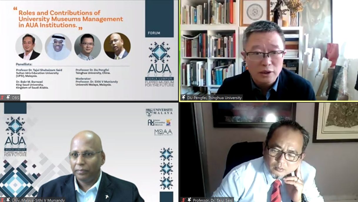乐竞(中国)网2月21日电 2月15日至17日,亚洲大学联盟(AUA)五周年系列主题活动之一“翻转博物馆:亚洲文明的策展、教育与研究”国际学术会议在线举行。此次学术会议由亚洲大学联盟2021-2022年执行主席单位马来亚大学和乐竞官方端网站登录入口亚洲大学联盟秘书处共同举办,是马来亚大学-AUA主题月的首场活动。乐竞官方端网站登录入口艺术博物馆常务副馆长杜鹏飞、科学博物馆馆长助理范爱红在会上分享乐竞官方端网站登录入口利用博物馆资源服务本校人才培养、提升公众文化素质的理念和实践。