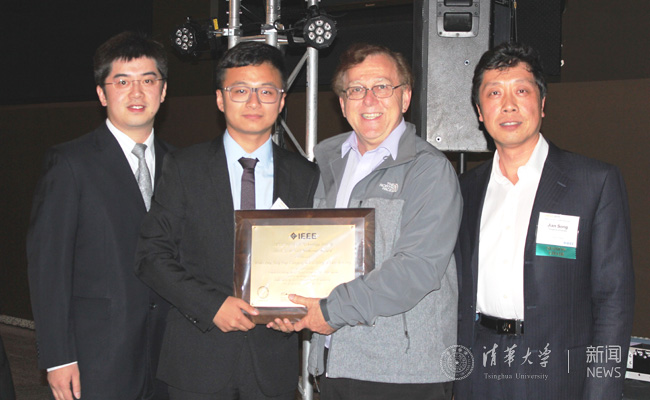 2015年丁文伯(左二)在比利时获颁IEEE最佳论文奖。