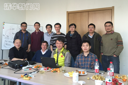 吴陈沭与导师刘云浩(前排右二)、副导师杨铮(前排右一)和项目团队成员开研讨会。