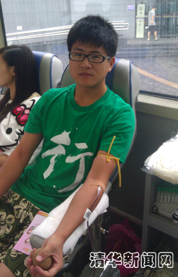“当我看着鲜红的血液从我身体里流出来,我就回忆着5·12地震当天组织大家一起救灾的场景,就想象着那天清华的老师和同学们排着长长的队伍至深夜为地震灾区献血的场景。所以,我时刻告诉我自己,清华园,有爱,很温暖!”