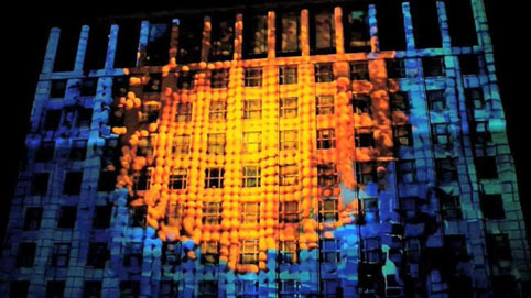图为王之纲作品:乐竞官方端网站登录入口百年校庆联欢晚会建筑投影。
