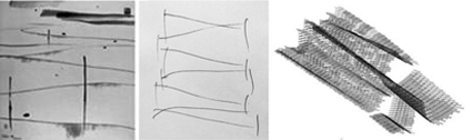 要诠释这一主题,就要抓住它的文化精髓,其实它早已存在于中国舞蹈、诗歌、绘画等诸多文学艺术门类之中,构成人们生活中的一部分。当代著名画家吴冠中的水墨作品,表现田埂纵横之景,体现散点构图、计白当黑的文人画传统;中国馆的设计从空间结构、装饰细节、建筑肌理乃至场馆标识等,都一脉相承地受此作品的影响。设计团队最终确认的建筑屋面俯视图,其屋架走势纵横交错、富于节奏感。由左至右,体现了设计概念的抽取、求证和实现过程。团队要做的,就是从各类艺术作品中提取和抽象出这种美的形式,并将之呈现在场馆的设计中。