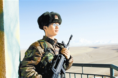 “望着蓝天下高高飘扬的五星红旗,望着战友们脸庞上泛起的‘高原红’,我胸中激情如火,浑身充满了力量,常常想起班长的那句经典台词:高原战士,只有倒下后才能被人抬下山!”