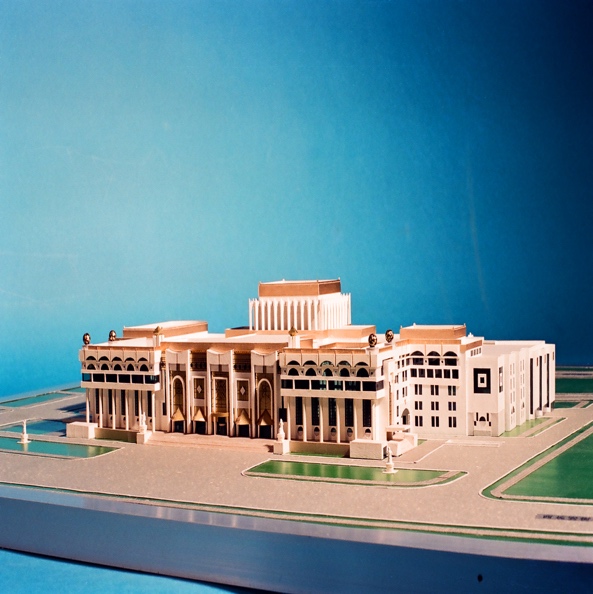 最终李道增提出了一个结合佛教坛城和九宫格构思的设计方案,得到大家高度认可。这个方案的主要剧场布局依然是他在80年代可研方案时的样式,三个剧场一字排开,南北朝向。但是此时的新方案增设了一个圆形的巨大围廊,围廊周边是巨大的水面,围廊、水面、剧场三者之间构建了复杂丰富的室内外空间,与周边的环境具有良好的契合关系。同时,方案本身也高度结合了东西方文化的内在精华,无论在形式上还是在空间上,既有西方古典建筑的气息,又有东方建筑文化的韵味,反映了其高超的设计水平和学术功底。