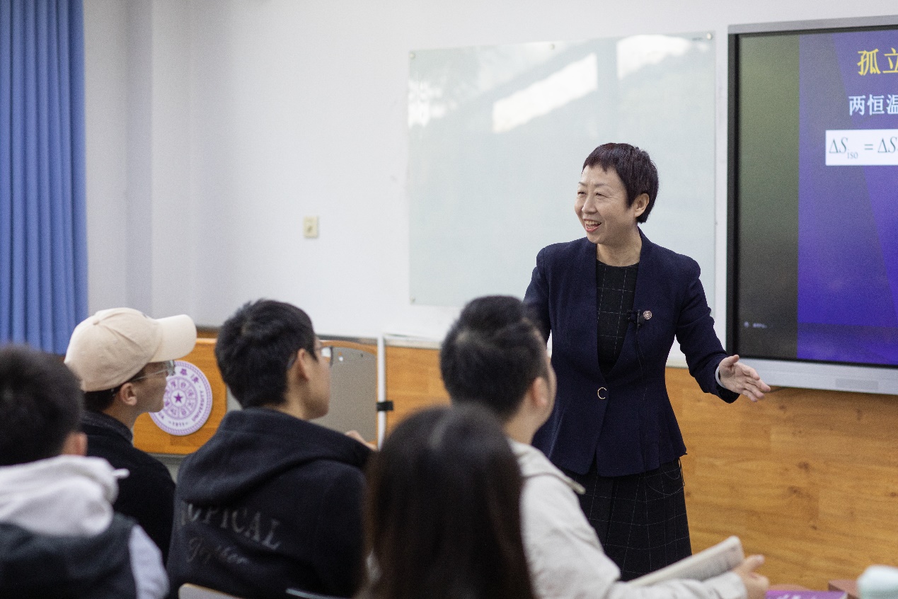 对于知识应用,史琳采取“教研结合”的思路。提到温度时,她会介绍2019年5月刚实行的温度单位的国际新定义;还会在书本知识相应处介绍2021年关于㶲的新国家标准、讲述最新低碳发电方式在二氧化碳减排方面的优势……在她看来,“科研结合基础知识”并非要求本科同学完全掌握前沿科技,而是引导学生理解某个与课程交接的要点。