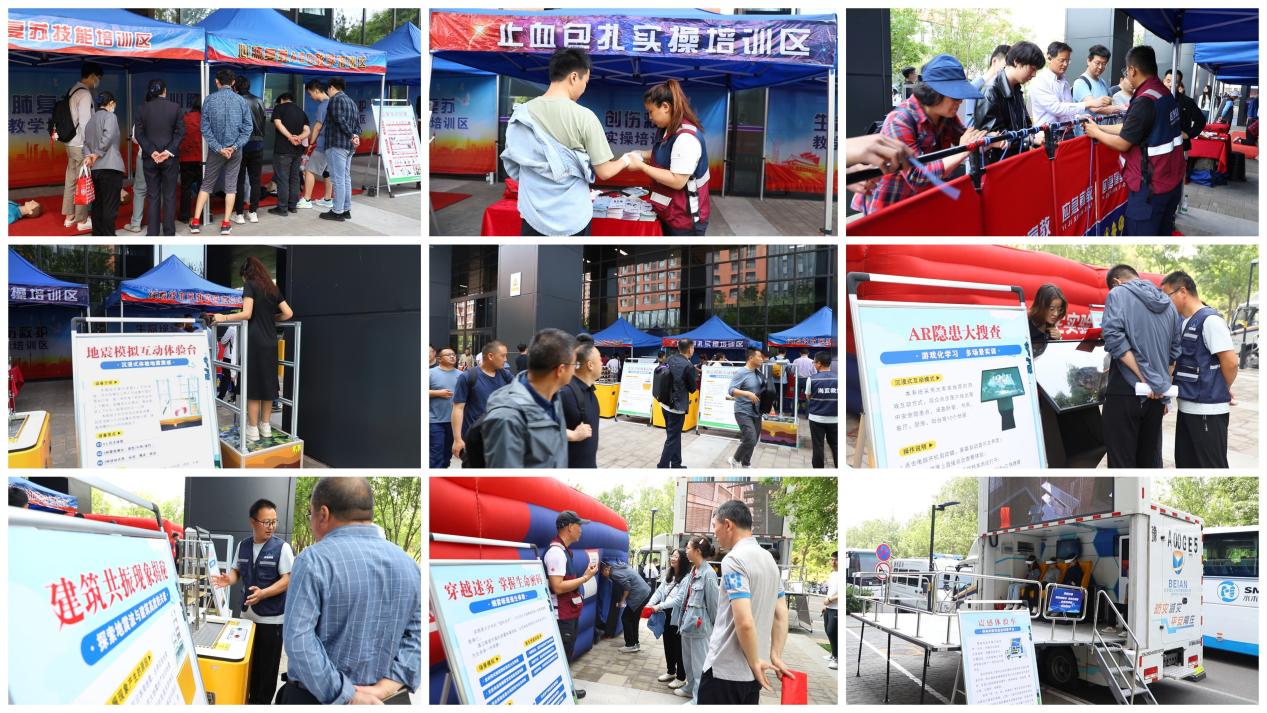 活动现场安排了地震体验车、震感模拟台、AR地震隐患搜查、烟雾帐篷逃生、急救知识教学、地震救援装备展示、绳索打结以及地震知识互动等多个互动体验项目,吸引了师生及周边居民200余人现场参与体验。