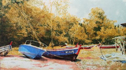 汤铭炜《停船的船只》丝网印刷