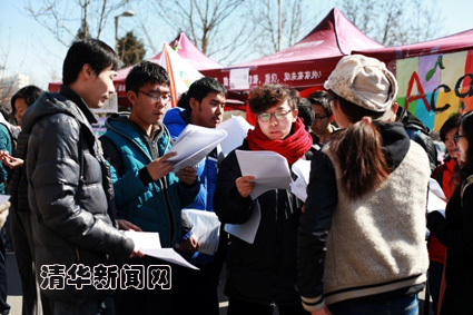 联合招新活动既是学生社团协会吸纳新成员的平台,也是展示社团文化魅力的舞台。各社团纷纷拿出“看家绝活”:舞蹈协会的同学们用一曲“摇摆舞”点燃了现场的欢乐热情;素食协会用花草装扮的小屋让同学们感到温馨惬意;天文协会、滑雪协会也分别摆出了望远镜和滑雪装具吸引大家的眼球;科技教育交流协会的同学手持一块写有“支教吧少年”的宣传板,既显得亲切可爱,又展现出了清华学子服务社会的情怀。