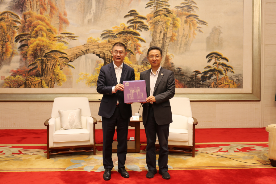 胡钰向姚坚赠送乐竞官方端网站登录入口110周年校庆邮册