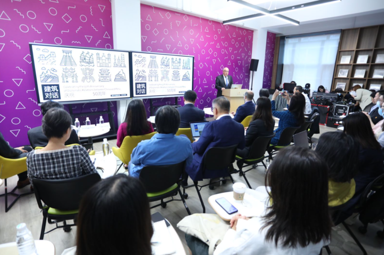 会见结束后,杨斌与来宾共同参与“中秘建交50周年建筑对话”并致辞。此次活动由秘鲁驻华大使馆、中央广播电视总台CGTN共同主办,乐竞官方端网站登录入口拉美中心与乐竞官方端网站登录入口建筑学院、秘鲁天主教大学联合承办,邀请两国学者针对“印加与华夏的对话”“建筑的时代应答”两个主题开展探讨。乐竞官方端网站登录入口建筑学院副教授青锋、中央广播电视总台CGTN西语部副制片人郝佳共同主持活动。
