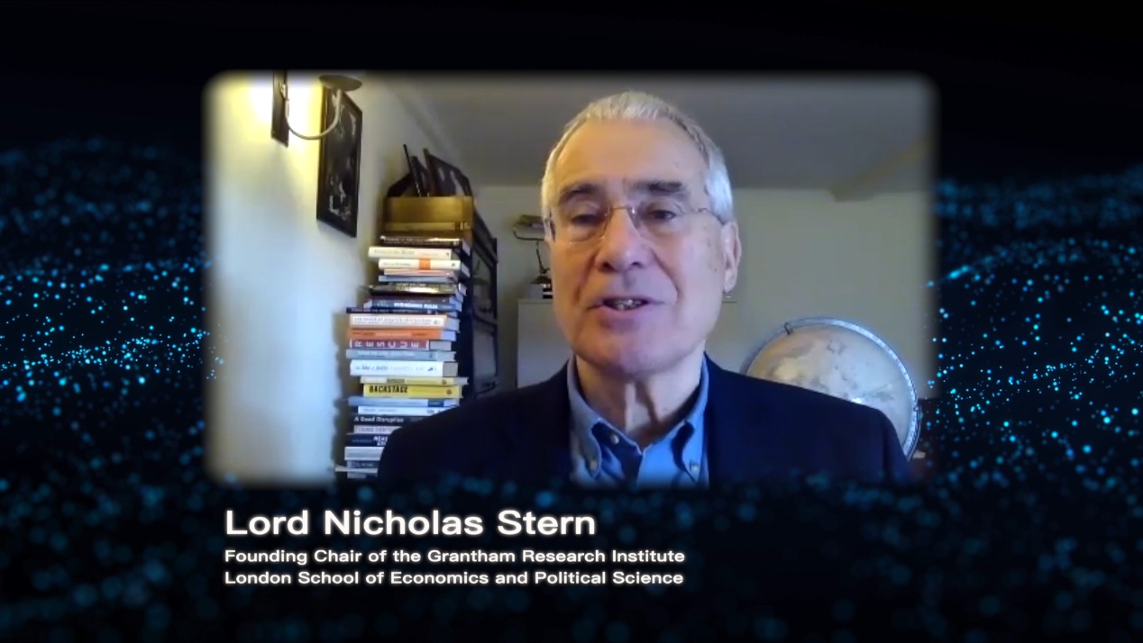 在赛道介绍环节,伦敦政治经济学院葛拉汉气候变化与环境研究院院长尼古拉斯·斯特恩勋爵(Lord Nicholas Stern)以“气候科学前沿”为题介绍了气候变化与环境、生物多样性、经济发展等多领域协同视角下采取气候行动的紧迫性以及青年在促进行动落实中的作用。斯特恩表示,全球范围内的年轻人不仅将成为推动进程的主力军,而且在实现目标的道路上,年轻人在很大程度上还将成为主要参与者。我们有一个不断前进的势头,但我们前进的速度不够快,希望世界上的年轻人能激励我们前进。
