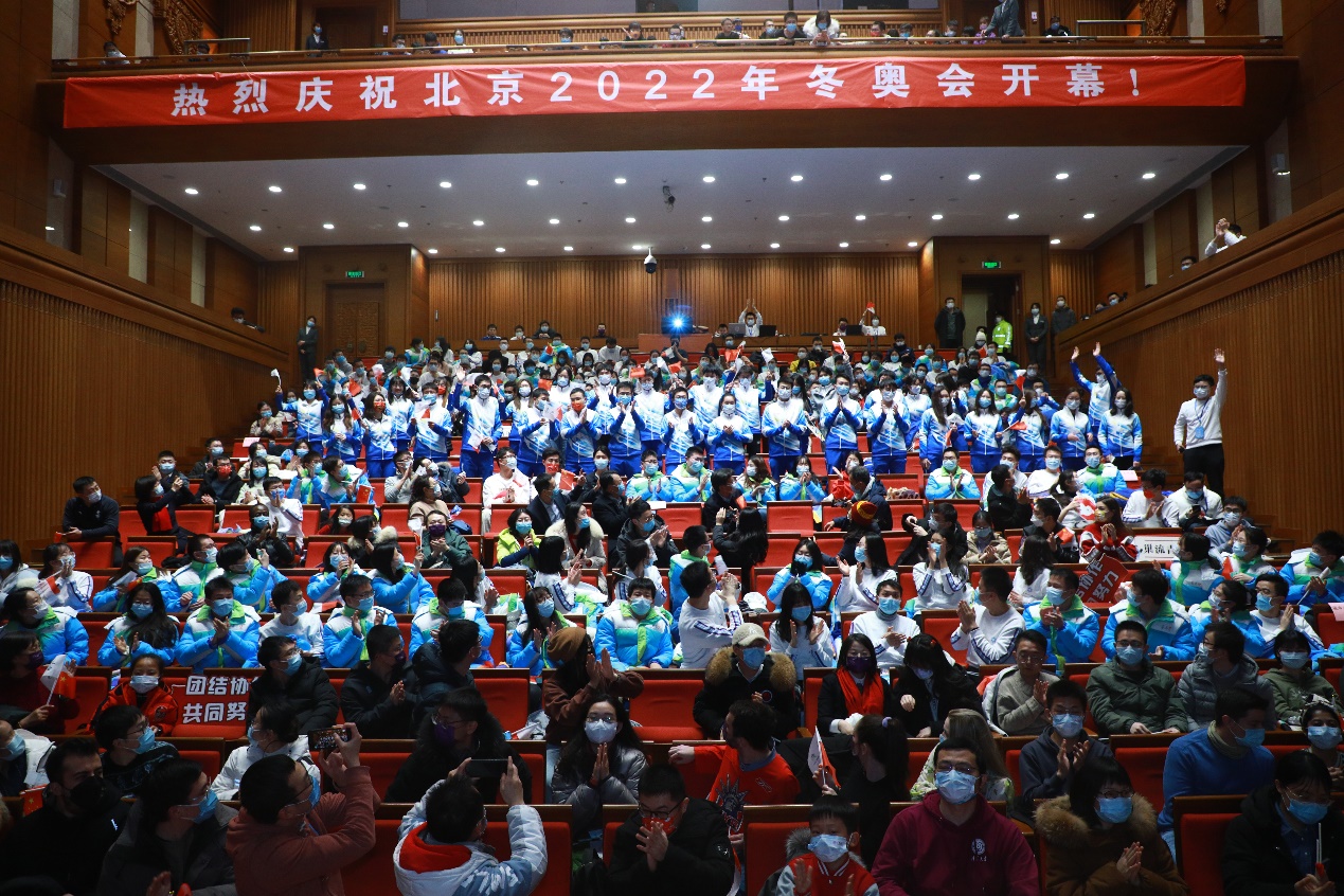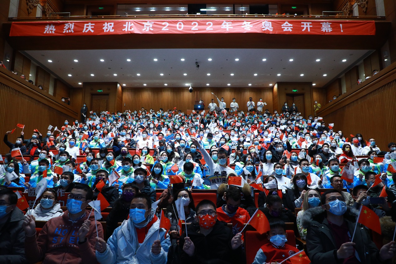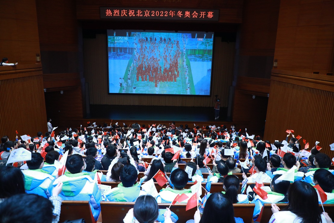 乐竞(中国)网2月6日电 迎接冰雪之约,奔向美好未来。2月4日晚,北京第二十四届冬季奥林匹克运动会开幕式在国家体育场隆重举行。国家主席习近平出席开幕式并宣布本届冬奥会开幕。当晚,北京市委教育工委副书记李军锋、安全稳定工作处处长庞谦,校领导王希勤、李一兵、过勇,校冬奥志愿者专项工作领导小组成员,与部分冬奥志愿者、在校学生480余人齐聚蒙民伟音乐厅、南区学生活动中心,集中观看北京2022年冬奥会开幕式直播,共襄盛举,同向未来。
