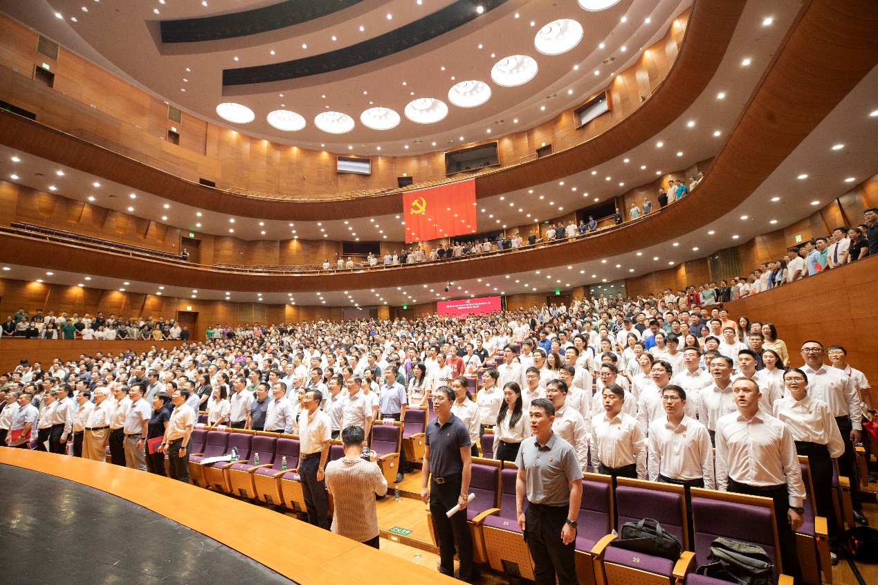 在“光荣在党50年”纪念章获得者、今年党龄67年的中国科学院院士过增元的领誓下,全体党员一起重温了入党誓词