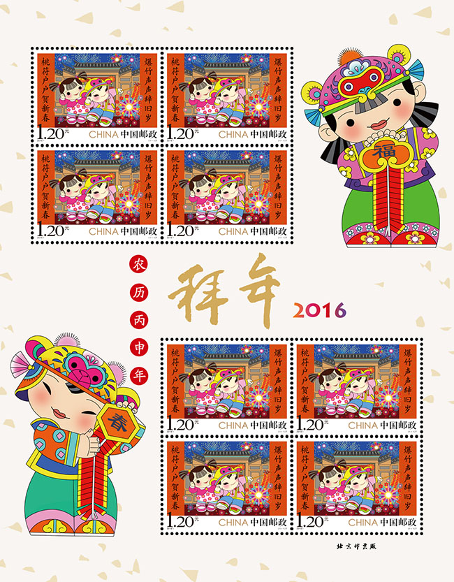 欢欢喜喜来拜年——清华美院吴冠英设计的2016年《拜年》邮票等首发