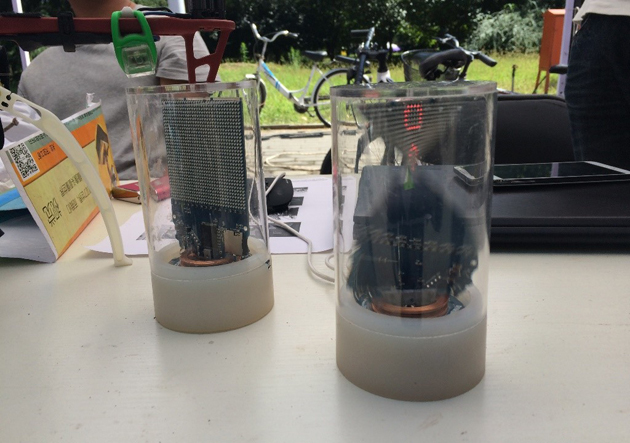 动物协会在向同学们介绍自己制作的昆虫标本。