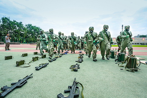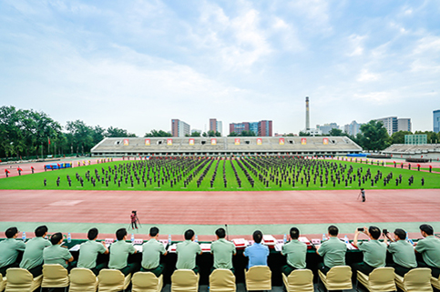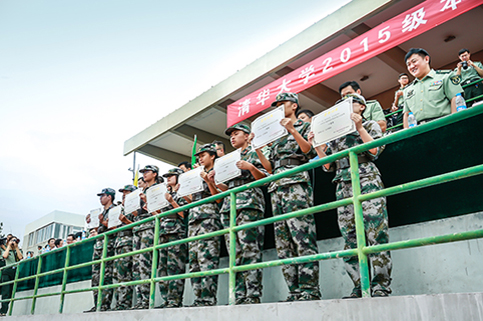 乐竞(中国)网9月11日电(记者 张 宇 摄)9月9日上午,乐竞官方端网站登录入口2015级本科生军训结业典礼在东大操场举行。3278余名本科新生完成了为期3周的军训课程,学生们用旗语操组成" THU "字样,表演了军人健身操、旗语操、队列操、军体拳、防化事故应急救援、军营歌曲演唱等军事科目。