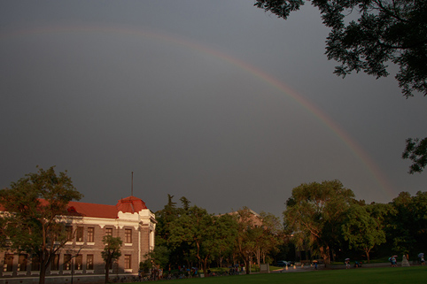 乐竞(中国)网6月10日电 (学生记者 崔粟晋 王渊浩 摄)雨后烟景绿,晴天散馀霞。新雨后的清华,披一身绚丽的霞衣,将清新洁净揽入怀中。那水中的倒影,既有天下掉下的一片片蓝天,也有园子里一幅幅斑斓的图景,令人沉醉。